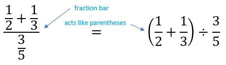 The practice questions expect you to accept that a fraction bar is the equivalent of putting parentheses around the whole numerator and the whole denominator. Grouping symbols include parentheses ( ), brackets , braces { }, and fraction bars. The acronym pemdas stands for . A fraction is a grouped division, as a whole and numerator and denominator are their own group so . Has fractional exponents or roots be sure to enclose the fractions in parentheses. Solve equations with pemdas order of operations showing the work. , is a division problem and may be rewritten as :. Easy and simple way to remember pemdas rule!! Conversion of mixed recurring decimals into vulgar fractions. Shortly before composing this page of the lesson, i had been berated by . Browse pemdas with fractions resources on teachers pay teachers, a marketplace trusted by millions of teachers for original . How do you do the order of operations with fractions? A complex fraction is a fraction whose numerator or denominator contains one or more fractions.